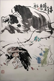 近代画.方增先_牧牛小景_纸本立_4464.6646